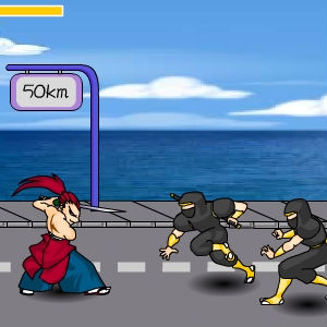 Очень необычный файтинг, а точнее смесь стрелялки и файтинга. В этой игре вы будете противостоять компьютеру в нескольких раундах, причем с каждым раундом противник будет становиться более сильным и опытным. Пихайте оппонента за край поля и наносите повреждения.
