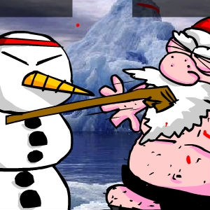 Прикольный рождественский файтинг. У вас есть выбор между тремя файтерами: рождественский эльф, снеговик и добрый Санта. У каждого свои блоки и удары. Играть надо вдвоем.