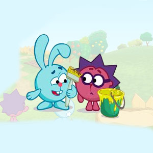 Покрасьте все одноцветные ульи Котапыча! Крош, Ежик и их специальная окрасочная машина смогут помочь тебе в этом. Курсором укажи направление запуска кисти с краской и кликни. Некоторые ульи требуют больше краски. Попытайся максимально долго не ронять ульи на землю и ты наберешь максимум игровых баллов!