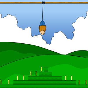 Вы прыгаете на резинке вниз и подбираете золотые кольца. Помните, что поверхность земли не мягкая и приземление может быть весьма болезненным. Здесь вам потребуется все ваше мастерство клавиатуры и мыши, а также лишний раз потренируете свою скорость реакции и мастерство решать на месте по обстановке.