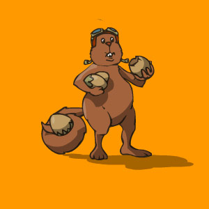 Играем в мини-гольф белками. Приподнимите белку, поставьте ее на колышек и, убедившись, что индикатор силы удара достигнет необходимого нам уровня, жмите пробел.