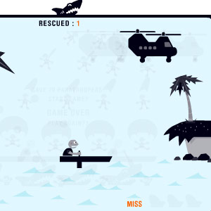 Данная игра на молниеносность реакции и сноровку. Спаси 80 парашютистов. Не допускай, чтобы они падали в воду. Управление стрелками. Классная игра для того, чтобы приятно потратить несколько минут в обеденный перерыв.