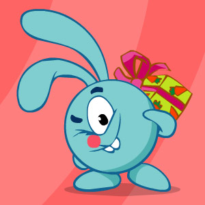 Смешарики решили насобирать полные лапы подарков для Совуньи и для Нюши. Для этого Ежик запускает воздушные шарики и с их помощью хватает ими подарки, а Крош собирает шарики с пойманными подарками. Вам необходимо будет управлять обоими персонажами.