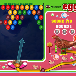 Любопытная аркадная игра. Помогите курице использовать ее собственные цветные яйца по назначению. Выстреливайте яйцами таким образом, чтобы собирать их в группы по 3 и больше.