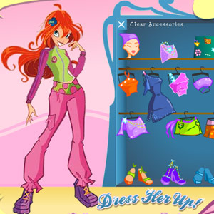 Настало время переодеться для девушек по имени Stella, Bloom, Flora и Лейла! Для каждой из девчонок есть: платья, бонданы, повязки, шапочки, солнечные очки, топы, штаны и шортики, юбки, джинсы, комбинезоны, шапки, диадемы, босоножки, туфли, сапоги, колготки. Померяй абсолютно все!