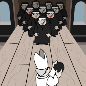 Классная флеш-игрушка, в которой сам Папа играет в боулинг и вместо кегль использует монахинь. Попробуйте уложиться в два броска и сбить всех монашек.