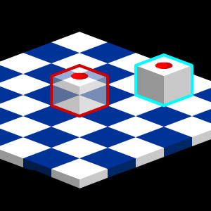 С помощью стрелок попробуйте переместить кубик с красной точкой в положение, как показано по центру игрового поля.