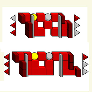 Очень интересная игрушка. Сдвигай красные кубы так, чтобы выпал желтый шарик, а серый остался бы в ловушке. Игра на логическое мышление.