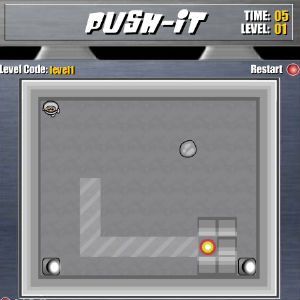 Классная флеш-игрушка, в которой вам нужно будет спихнуть каменный валун в отверстие при помощи стрелок.