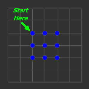 Попробуй соединить эти 9 синих точек только 4-мя прямыми линиями. Игрушка на логику.