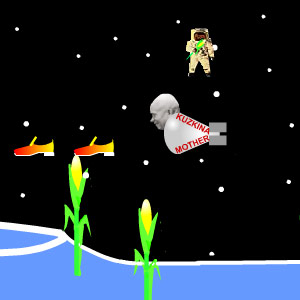 Шуточная игрушка. Управляйте летающим Хрущевым и стреляйте огненными туфлями по астронавтам с космической миссии Аполлон. Вот такой вот бред...