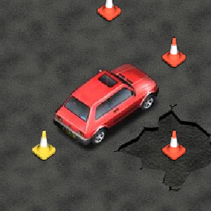 За некоторое время вам необходимо сбить все дорожные конусы на экране. Не врезайтесь в стены, столбы и краны с водой. Игра на ловкость и маневренность.